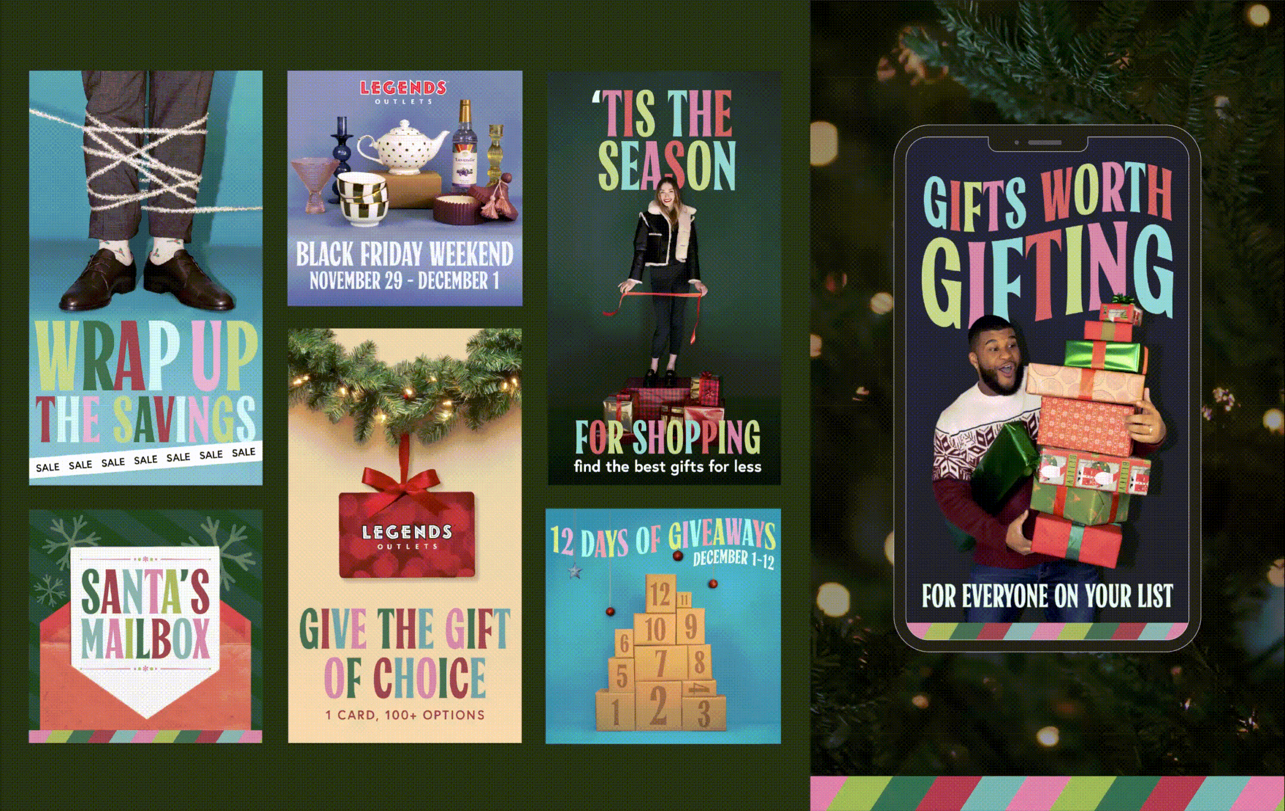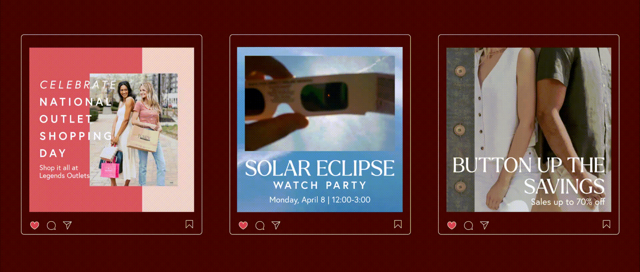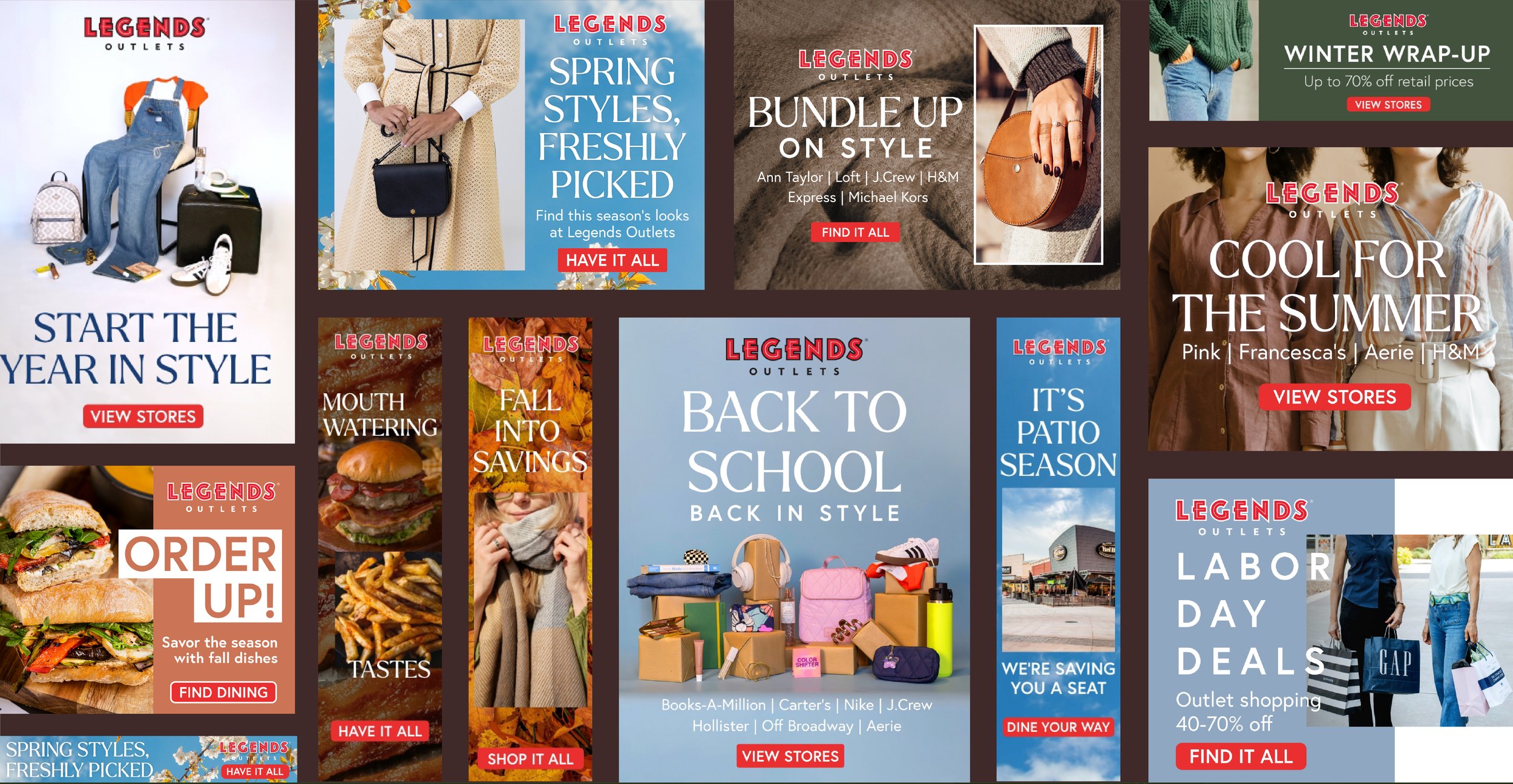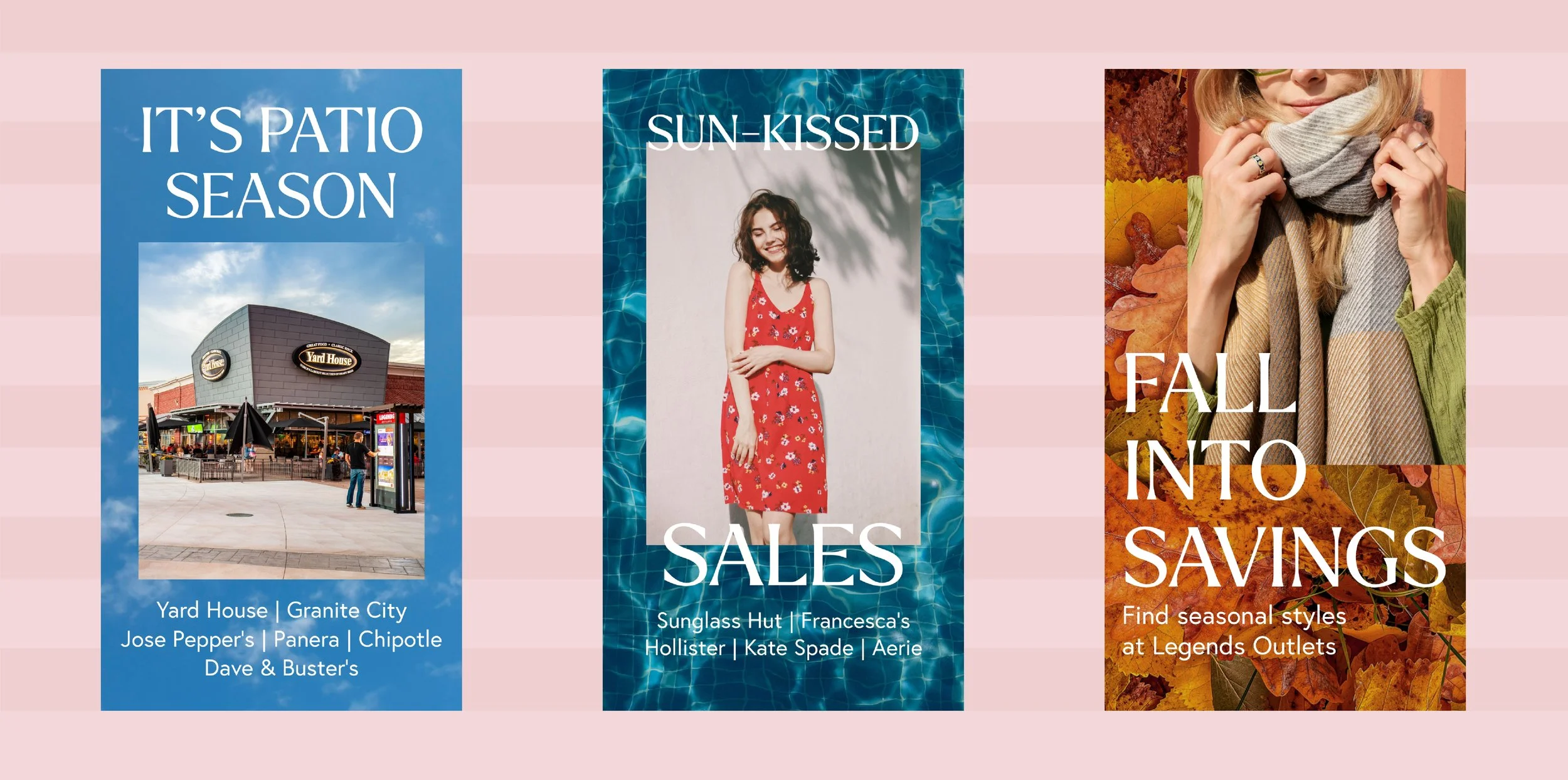 More than shopping, more than dining, at Legends Outlets you’re part of it all, with the sights, sounds, tastes, and scents of a great time right at your fingertips. This year-round campaign highlights what it feels like to be immersed in the atmosphere of Legends, focusing on the five senses in the messaging and the visuals.