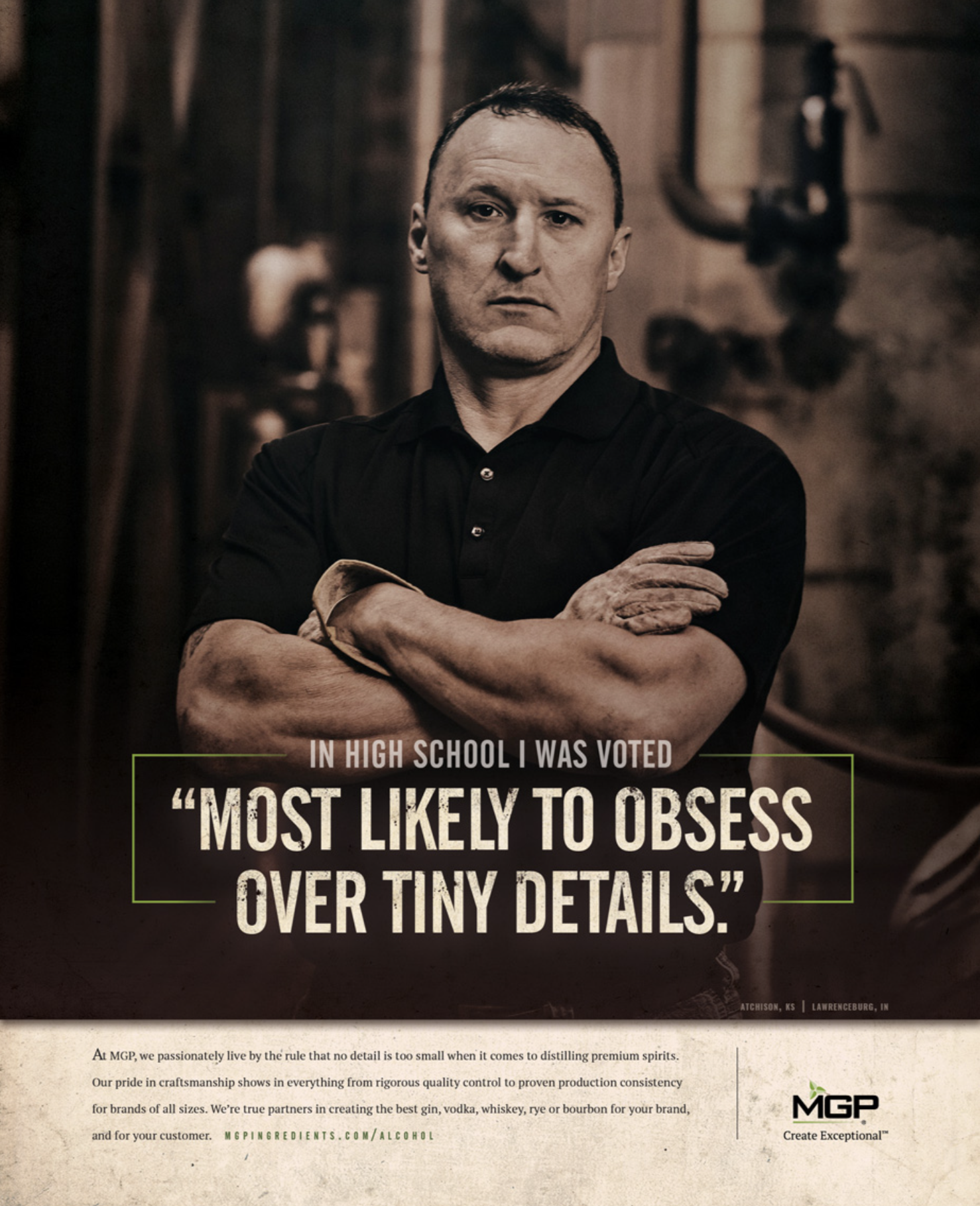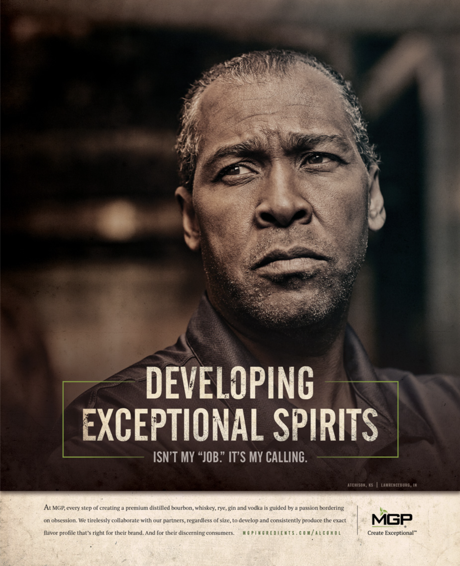 In a market full of similar advertising tactics, MGP Ingredients needed to stand out. Focusing on the people behind the product, we called attention to the obsession of mastering the craft with a campaign featuring real MGP employees.